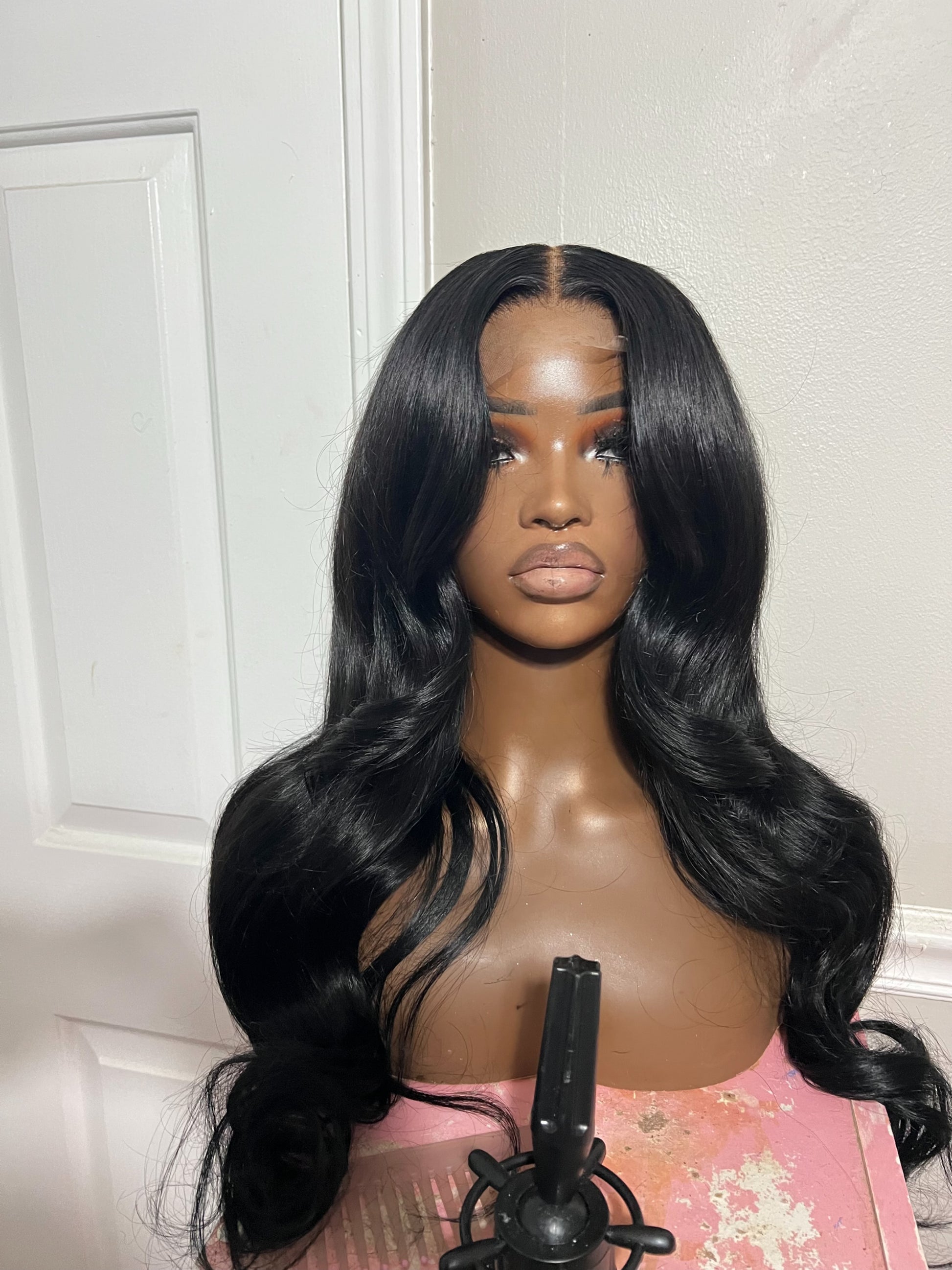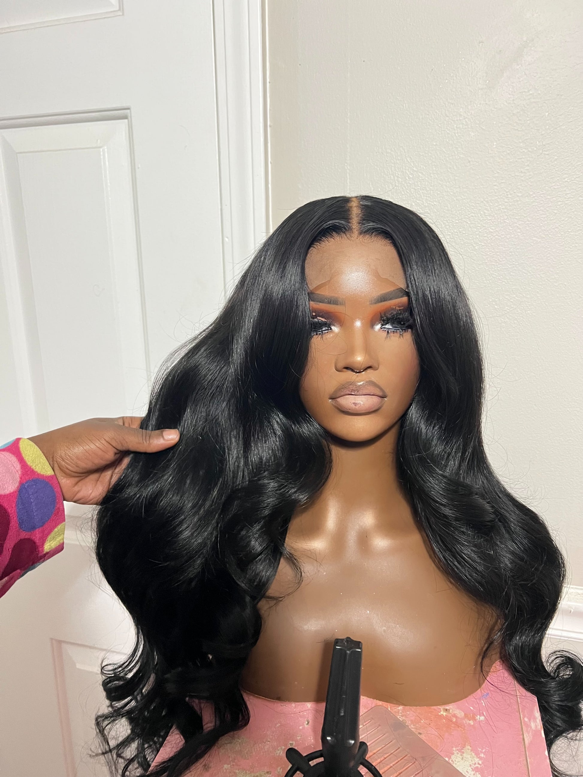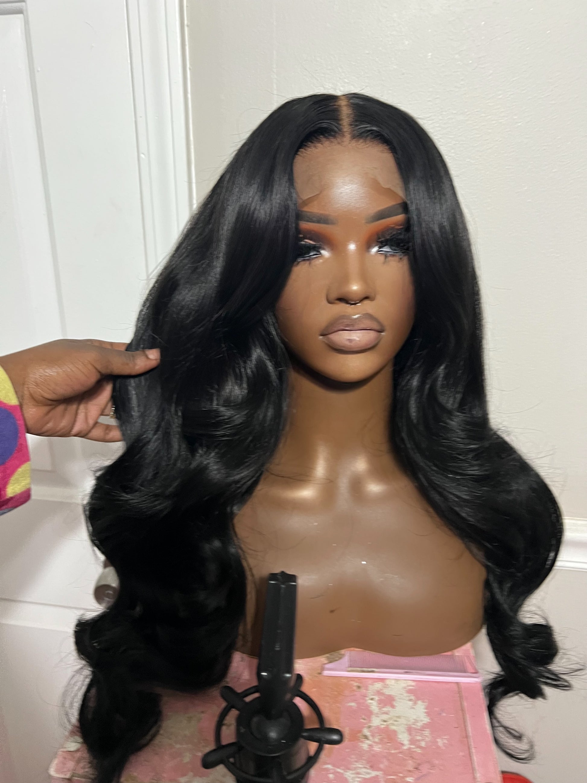 4x4 trans lace closure with 4 bundles of bodywave virgin hair Baddie on a budget collection… 7a grade hair quality bundles. Unit is sewing machine constructed on black mesh dome cap. Custom coloredJET BLACK. All units come ready to wear with a preplucked hairline, bleached knots and styled to your liking.( middle part, curls) & ready to wear. Includes adjustable elastic band and combs for a glueless fit