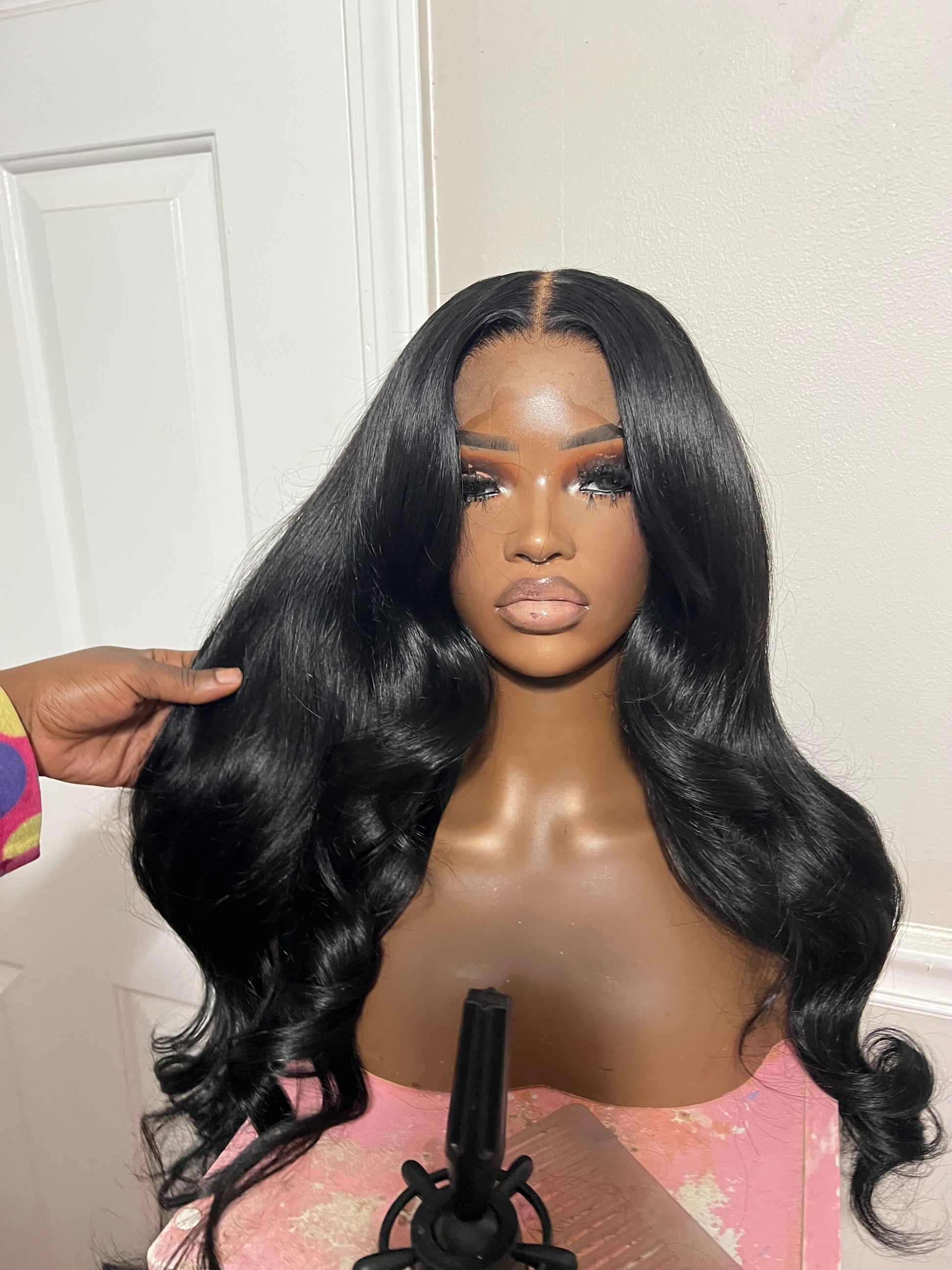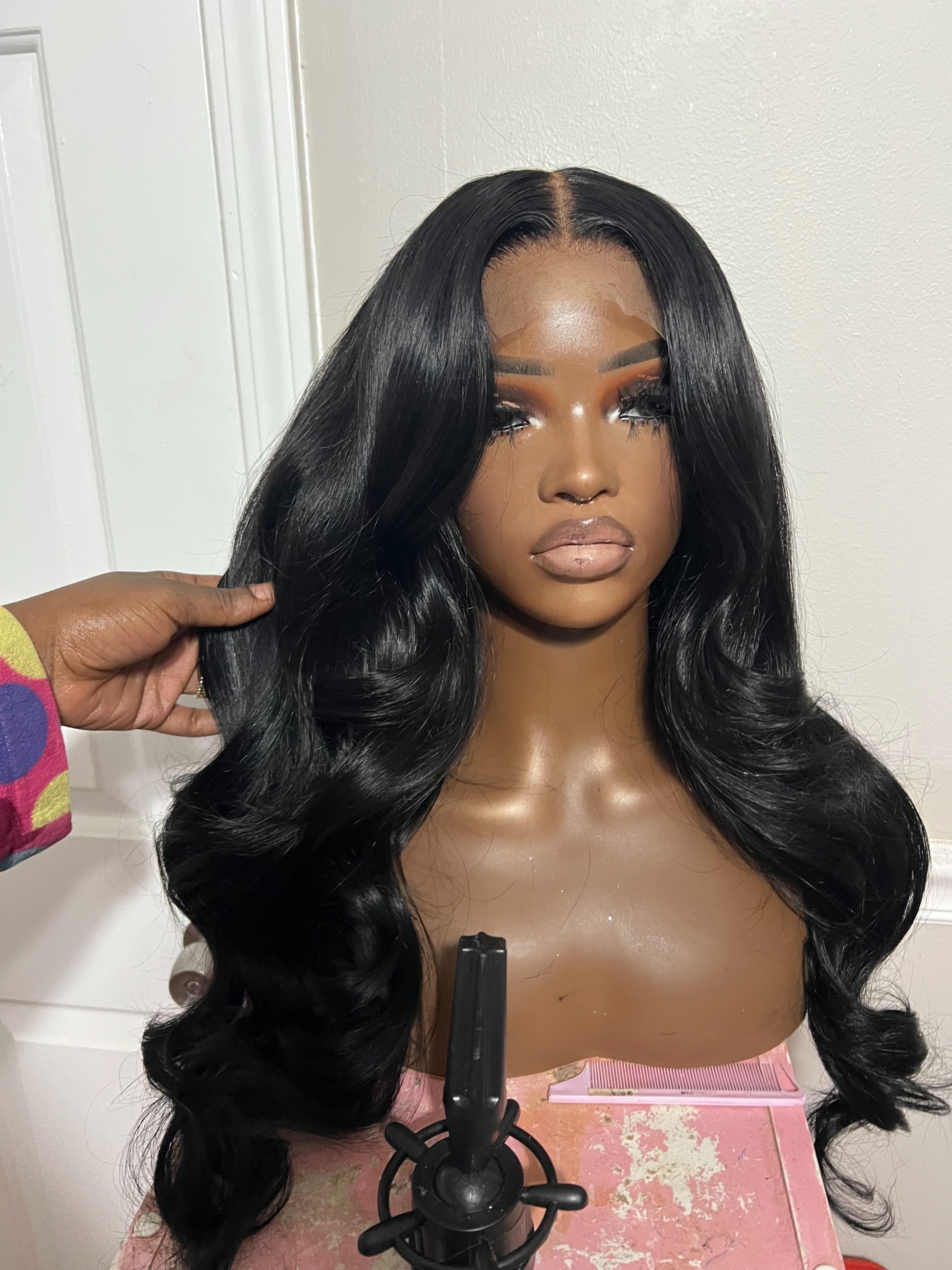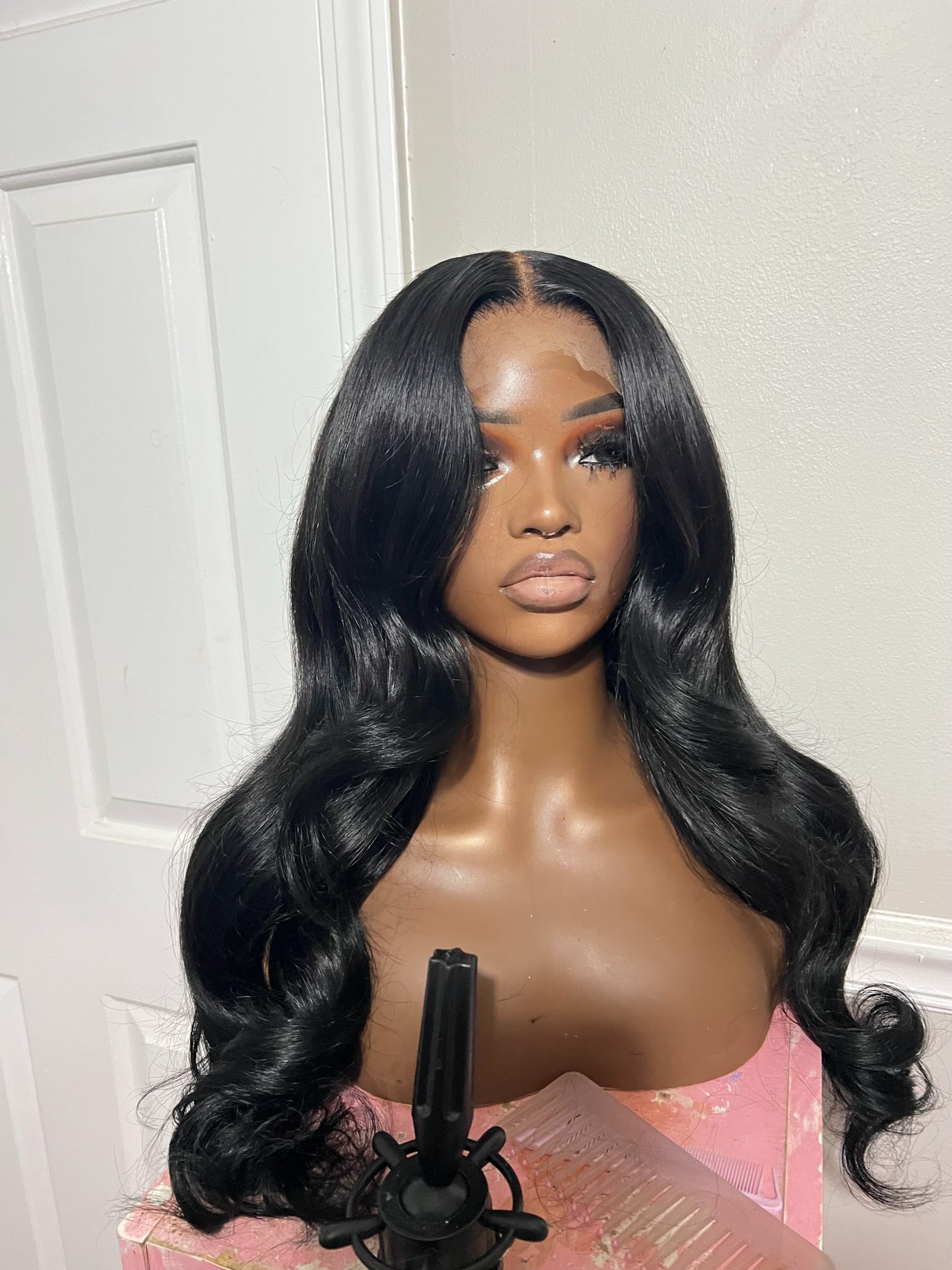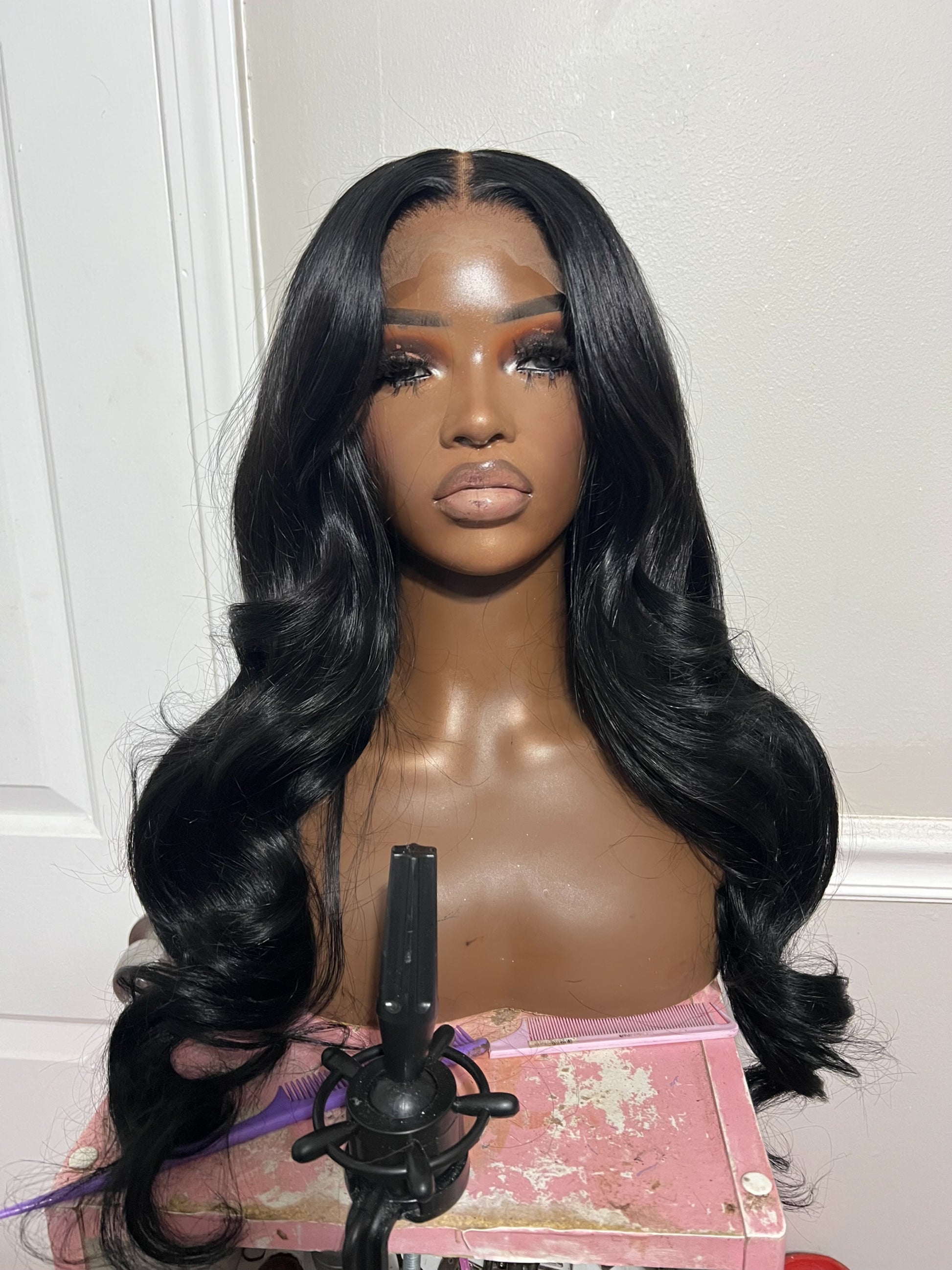 4x4 trans lace closure with 4 bundles of bodywave virgin hair Baddie on a budget collection… 7a grade hair quality bundles. Unit is sewing machine constructed on black mesh dome cap. Custom coloredJET BLACK. All units come ready to wear with a preplucked hairline, bleached knots and styled to your liking.( middle part, curls) & ready to wear. Includes adjustable elastic band and combs for a glueless fit