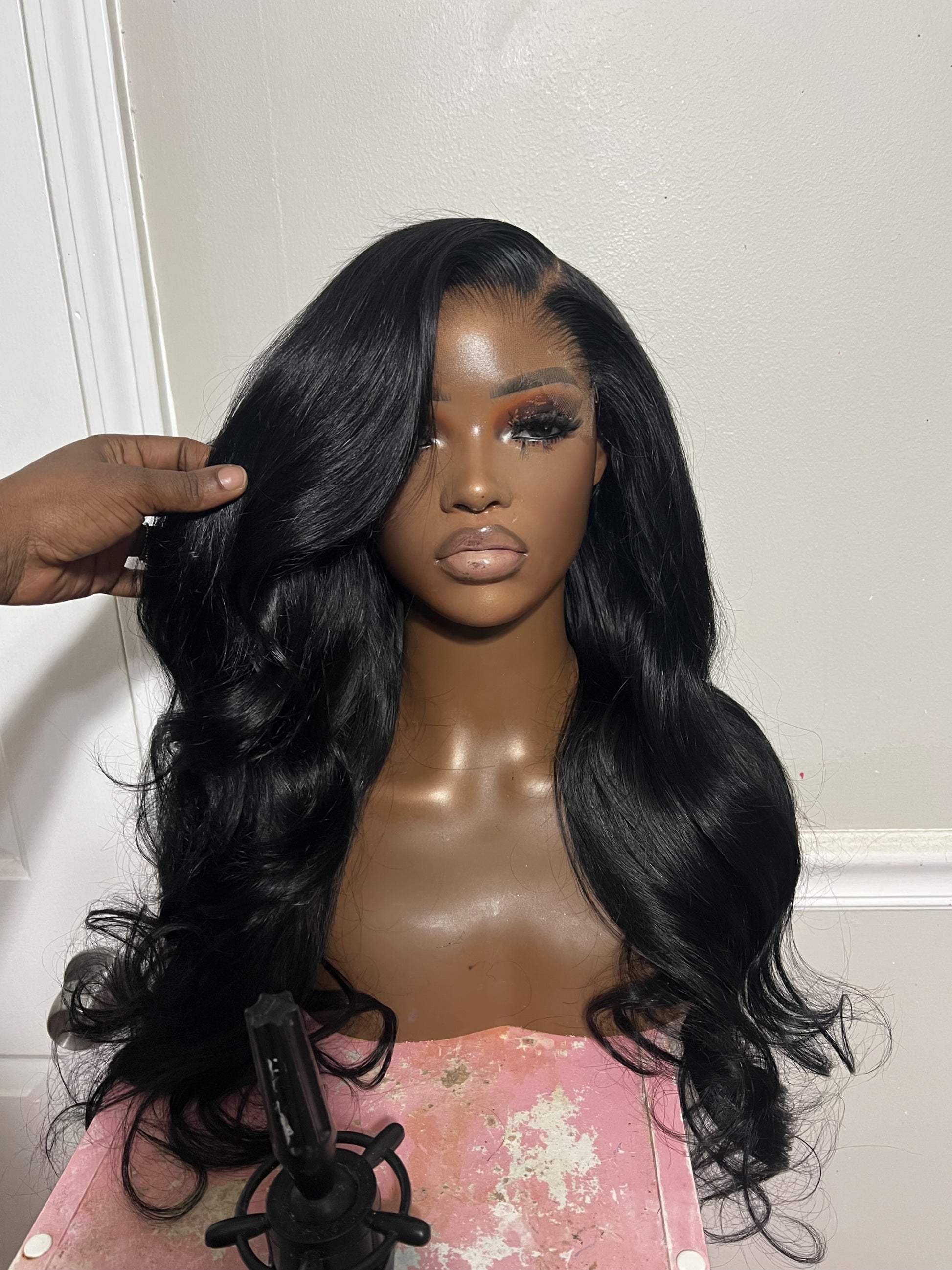 6x6 HD lace closure with 4 bundles of bodywave virgin hair Baddie on a budget collection… 7a grade hair quality bundles. Unit is sewing machine constructed on black mesh dome cap. Custom coloredJET BLACK. All units come ready to wear with a preplucked hairline, bleached knots and styled to your liking.( middle part, curls) & ready to wear. Includes adjustable elastic band and combs for a glueless fit