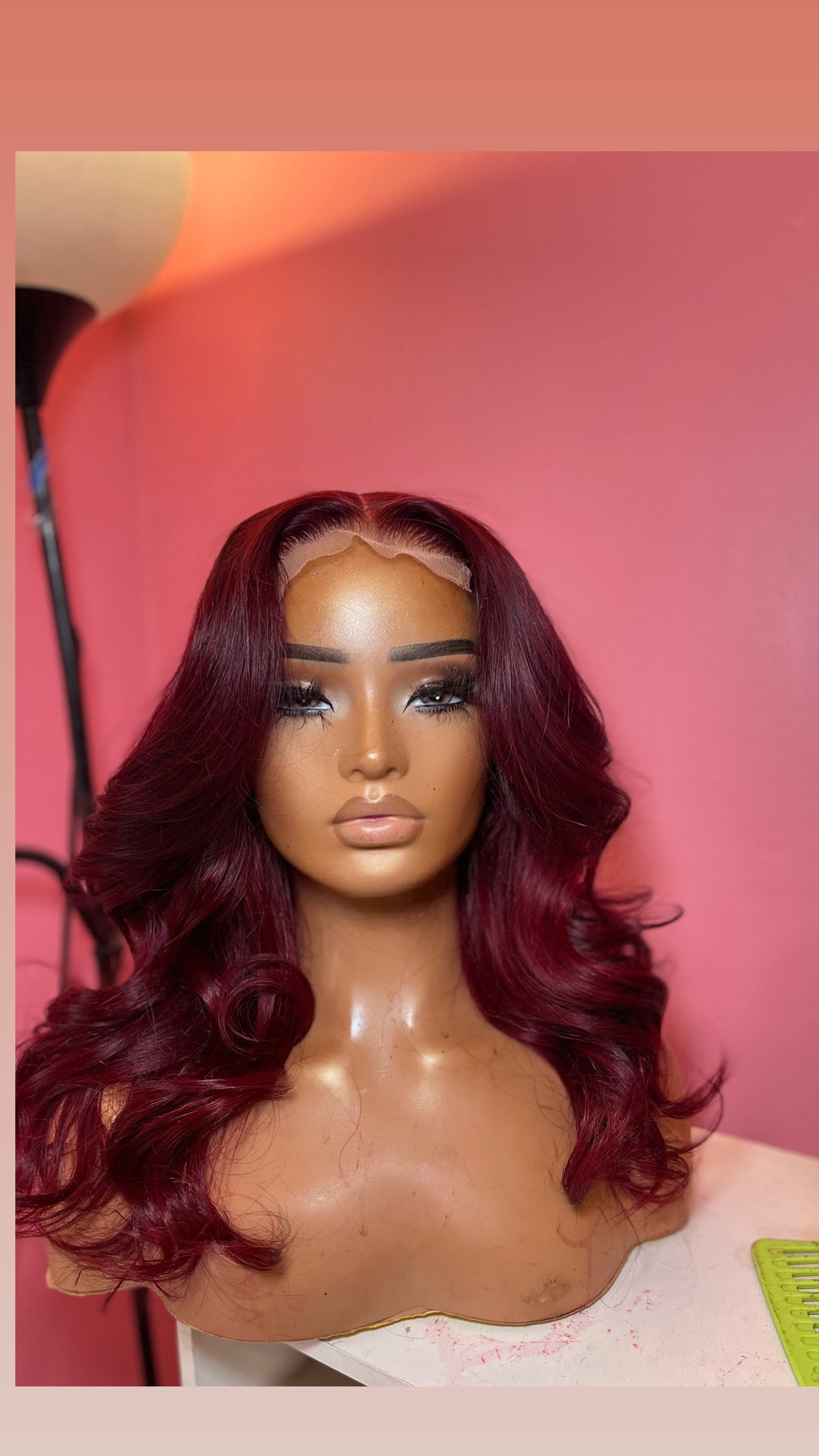 4x4 transparent lace closure with 3 bundles of bodywave 100% virgin human hair custom colored with tones of red & burgundy. All units come preplucked knots bleached and ready to wear. Includes adjustable elastic band and combs for a glueless fit