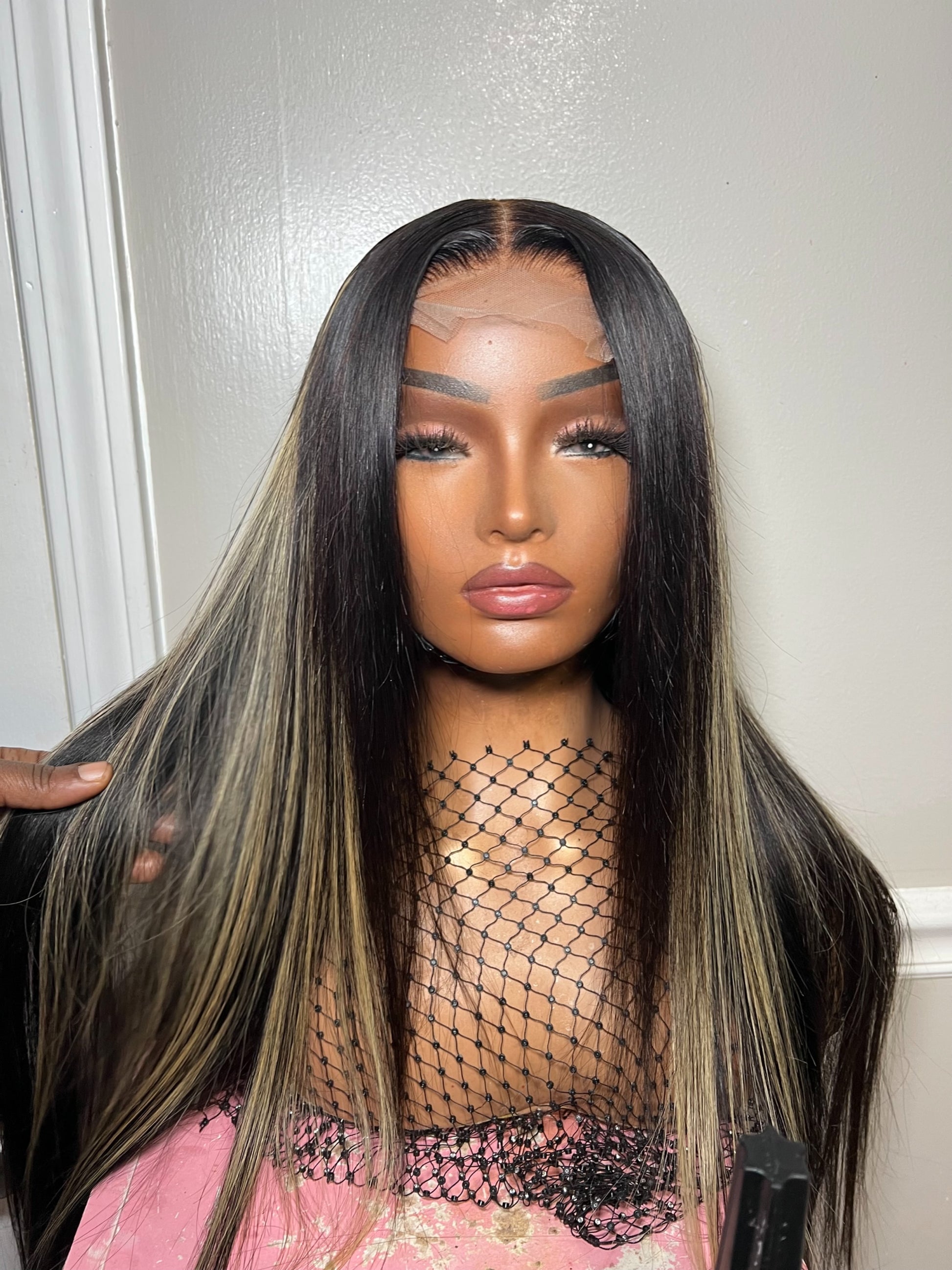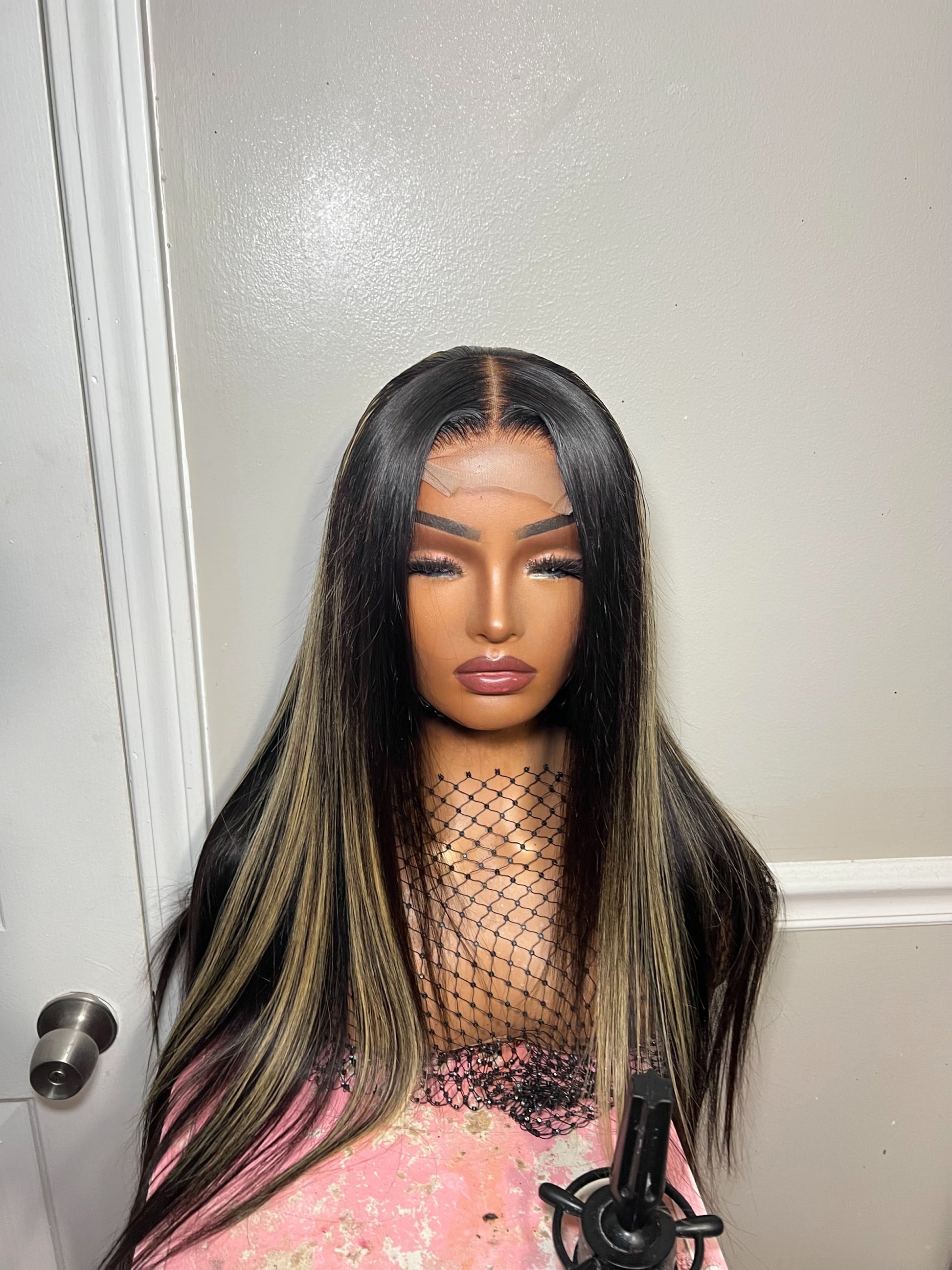 4x4 trans lace closure with 3 bundles of bodywave from our Baddie on a budget collection… 7a grade hair quality bundles. Unit is sewing machine constructed on black mesh dome cap.. custom colored jet black and platinum blonde . All units come ready to wear with a preplucked hairline, bleached knots and styled to your liking.( middle part, curls) & ready to wear. Includes adjustable elastic band and combs for a glueless fit